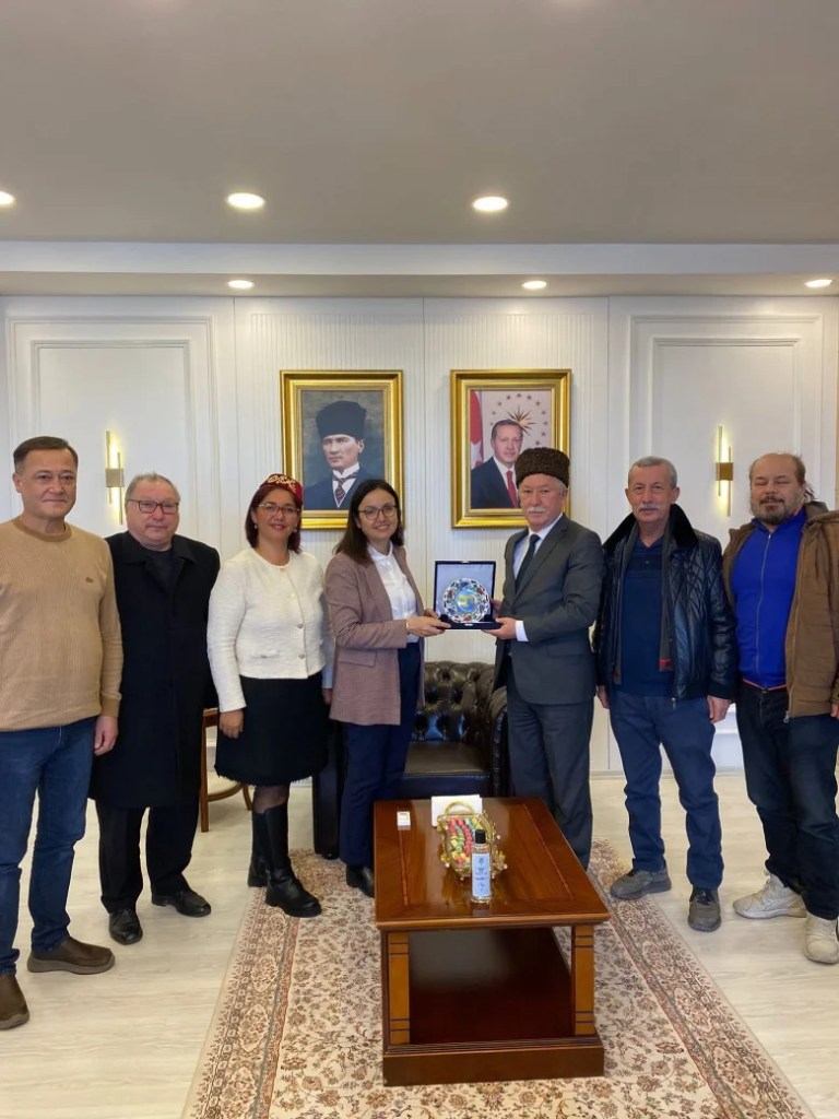 Dernek üyeleri, Vali Dr. Hülya Kara’ya Kırım’ın simgesi olan Tarak Tamgalı tabak ve geleneksel tel kırma işlemeli fular takdim etti. Bu anlamlı hediyeler, Kırım Tatar kültürünün zenginliğini ve derneğin kültürel değerleri yaşatma misyonunu vurguladı.